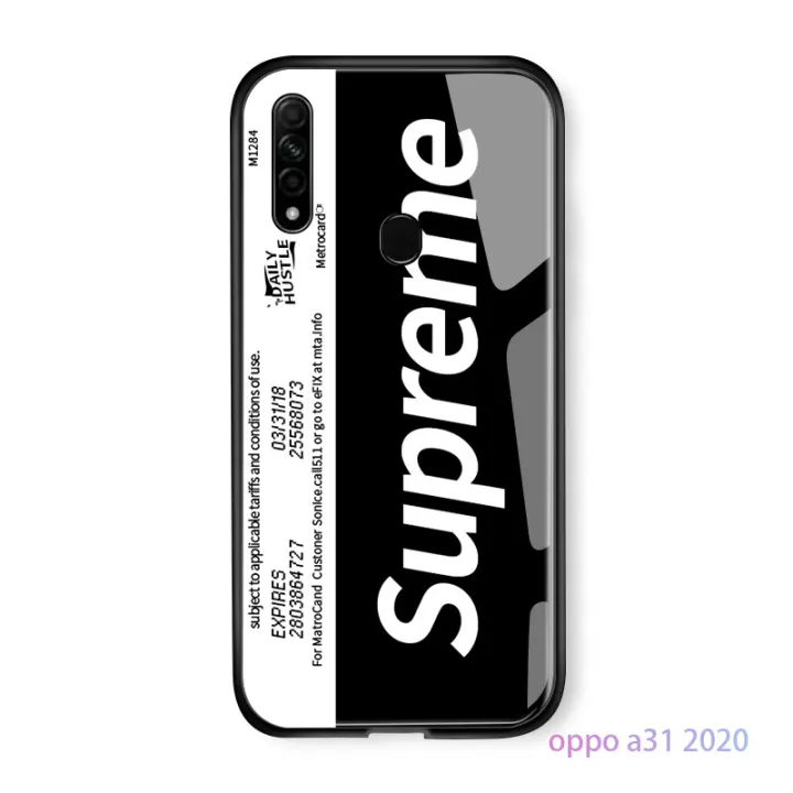 For Oppo A31 2020 Case Fashion Luxury Supreme Logo Popular Brand Cover Casing Glossy Tempered Glass Phone Case Lazada