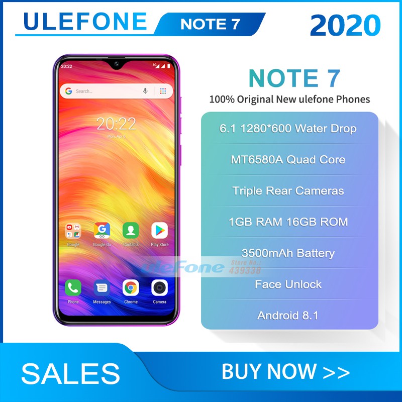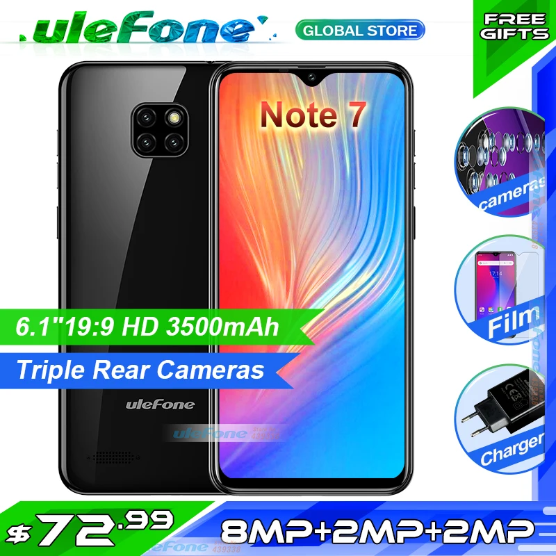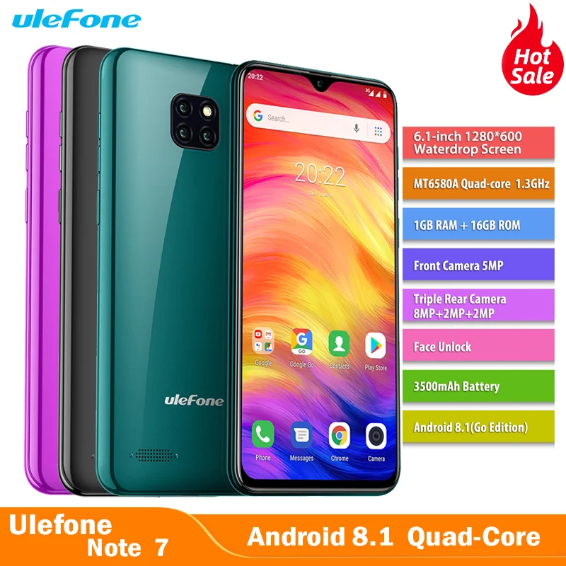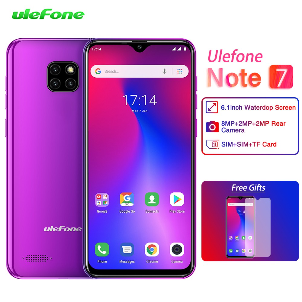 Ulefone Note 7 Smartphone 6 1 Inch 1gb Ram 16gb Rom Mt6580a Quad Core 3500mah Face Id Three Rear Cameras Android 9 Mobile Phone Aliexpress